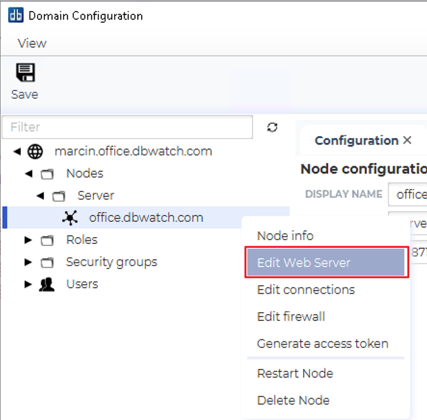 Right-click on your domain server (e.g. office.dbwatch.com).