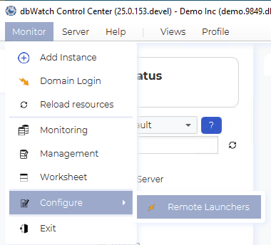 To configure Remote Launchers, go to Monitor / Configure / Remote Launchers