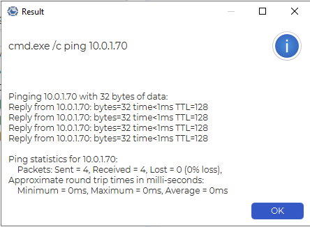 By selecting Ping a ping result for the appropriate host will be displayed.