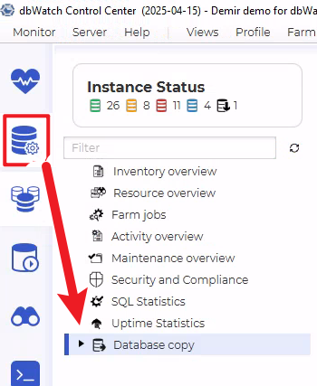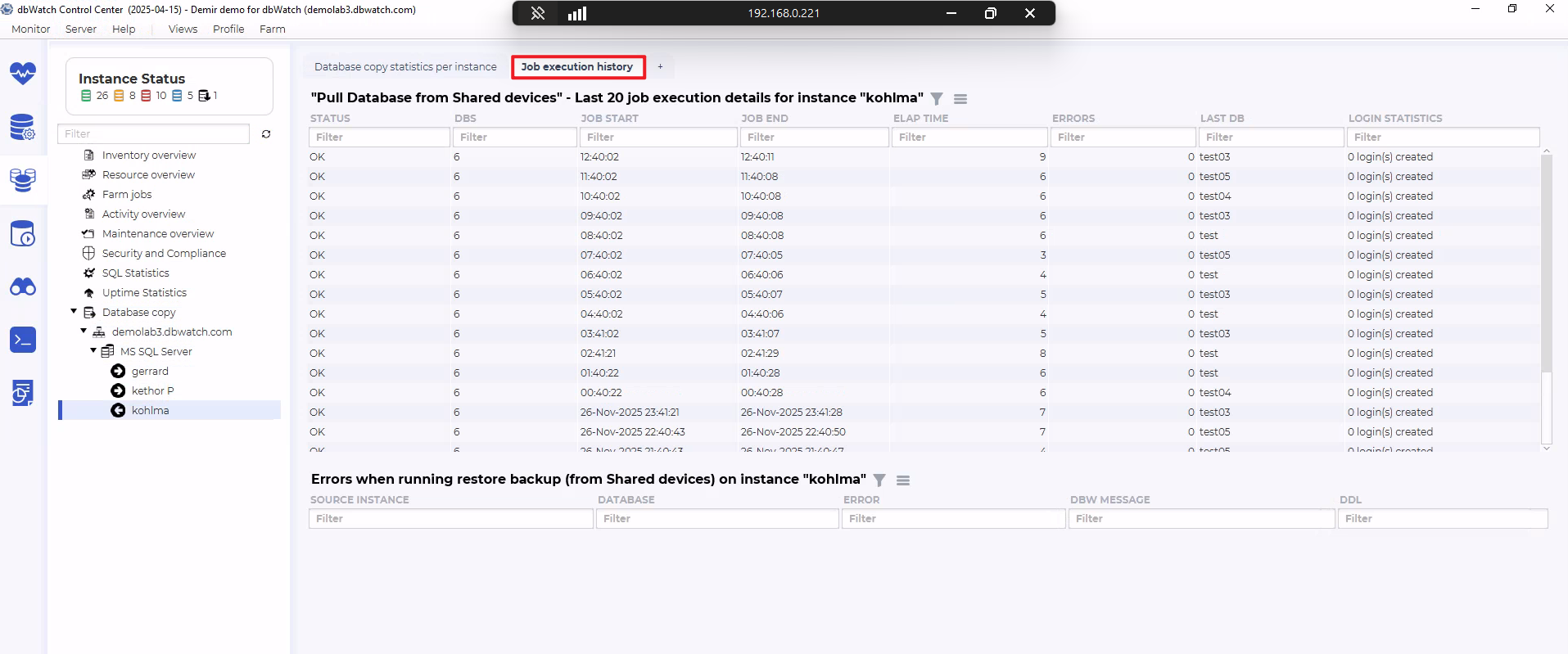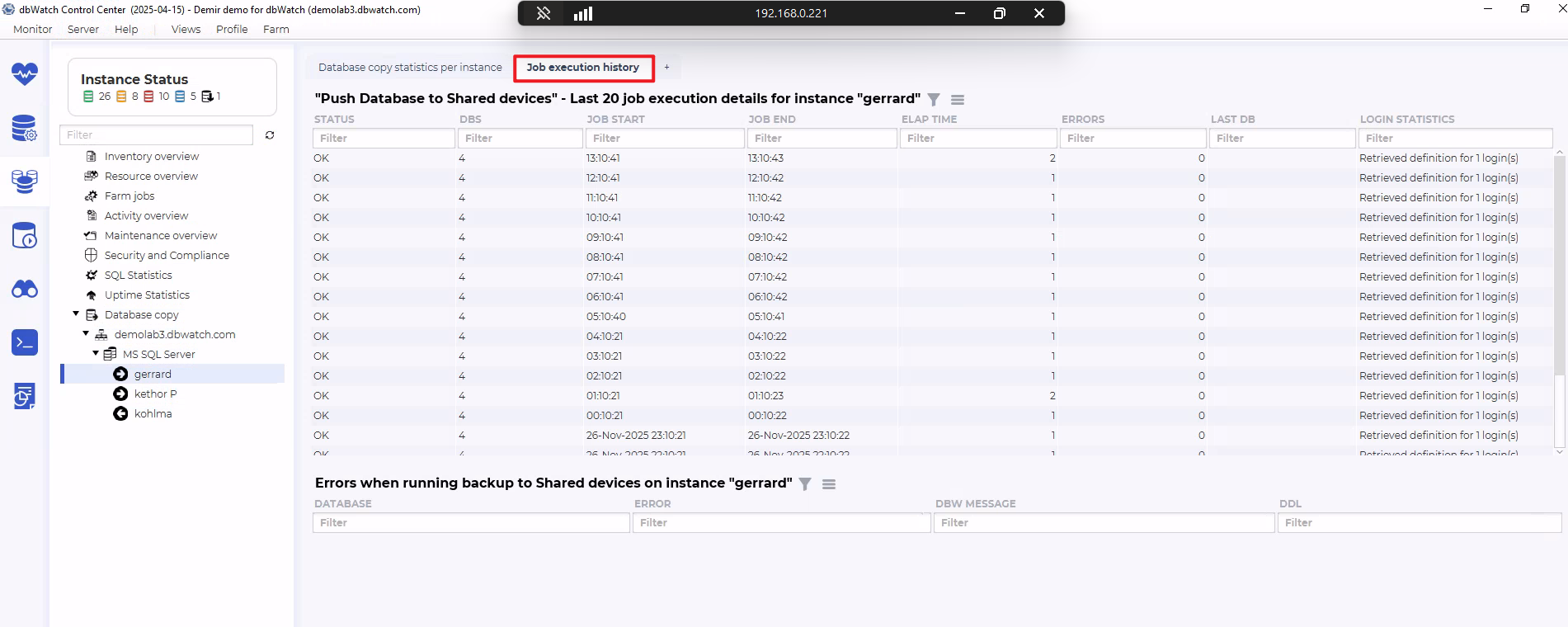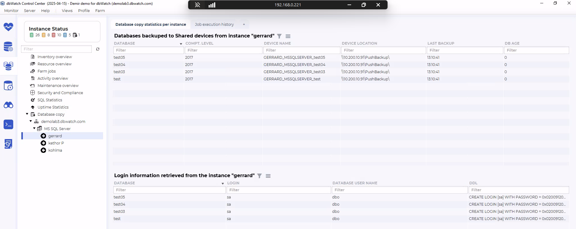 dbWatch Control Center provides a powerful overview of all database copy operations—both Push Backup to Shared Devices and Pull Backup from Shared Devices—through the Farm View interface.