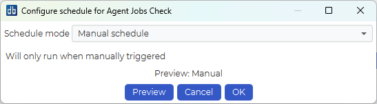 Manual schedule means the job will not run unless explicitly triggered by a user, by right clicking it and selecting “Run now”.