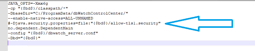 2. Edit the file (default Windows location): C:\Program Files\dbWatchControlCenter\dbwatch_server.parameters