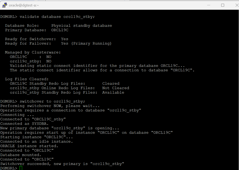 - ORCL19C_stby becomes the new primary