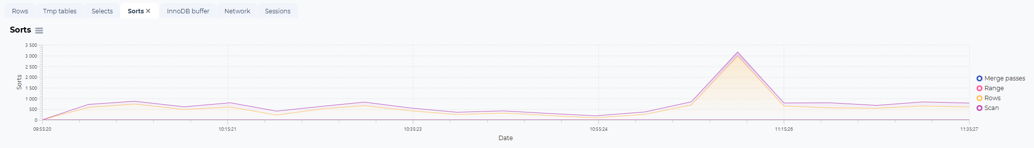 The number of sorts in the selected time frame where this SQL or procedure was executed